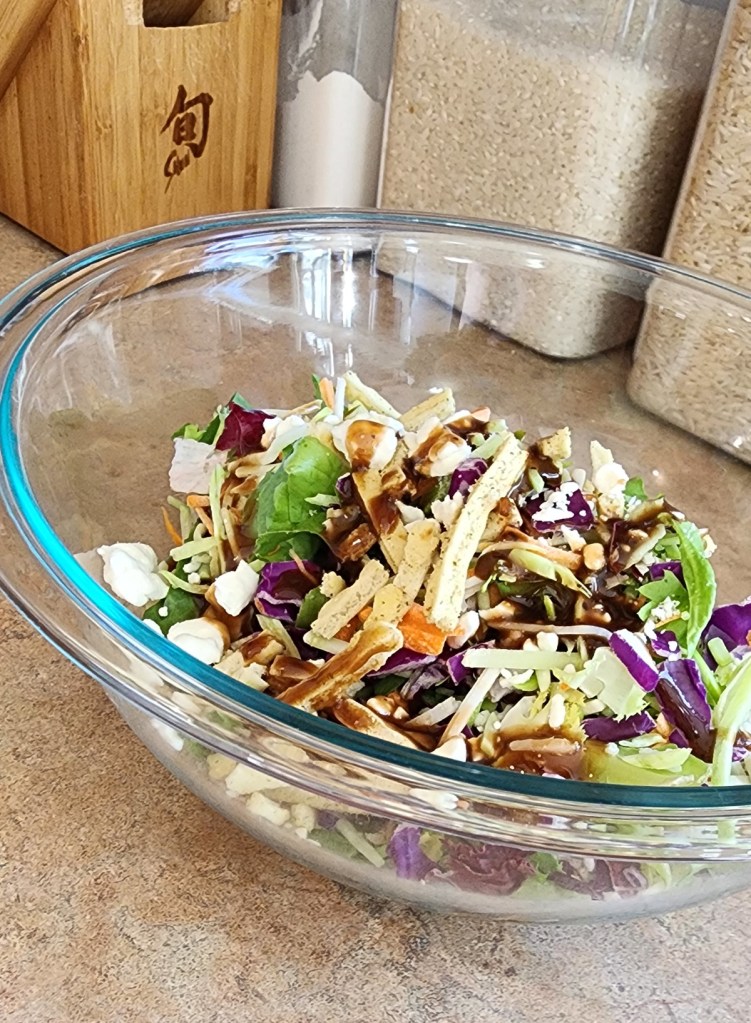 If your executive dysfunction is anything like mine, don’t just get the salad base. Get the whole kit: veggies, toppings, and dressing.